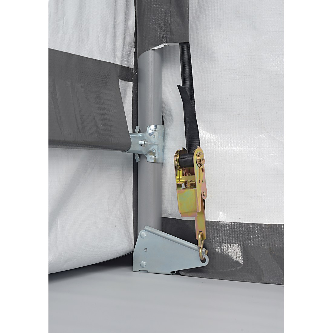 Meet the AccelaFrame Garage 12 x 100 x 9 ft. Heavy Duty PVC 14.5 oz Gray. The revolutionary AccelaFrame Custom Garage Program is the only patented quick assembly, custom garage. Made to last season after season, the AccelaFrame is built strong and features our patented quick assembly technology. The AccelaFrame is the only quick assembly garage available in such a wide range of size options. Choose from a garage as small as 12 x 10 x 9 ft. or as large as 12 x 100 x 9 ft. and in a variety of color options. Assemble your AccelaFrame in no time thanks to the AccelaFrame Rib and Quick Assembly System - some garages can be properly assembled in less than an hour! Strong, sturdy and durable - the AccelaFrame offers protection for items you need to store and is a portable and easy to assemble reliable storage solution. Whether you're looking for a seasonal shelter or garage for your car, ATV, truck or boat - or you need a more permanent shelter or garage for your backyard, the AccelaFrame Custom Garage Program has the size you need to safely and securely store your items.