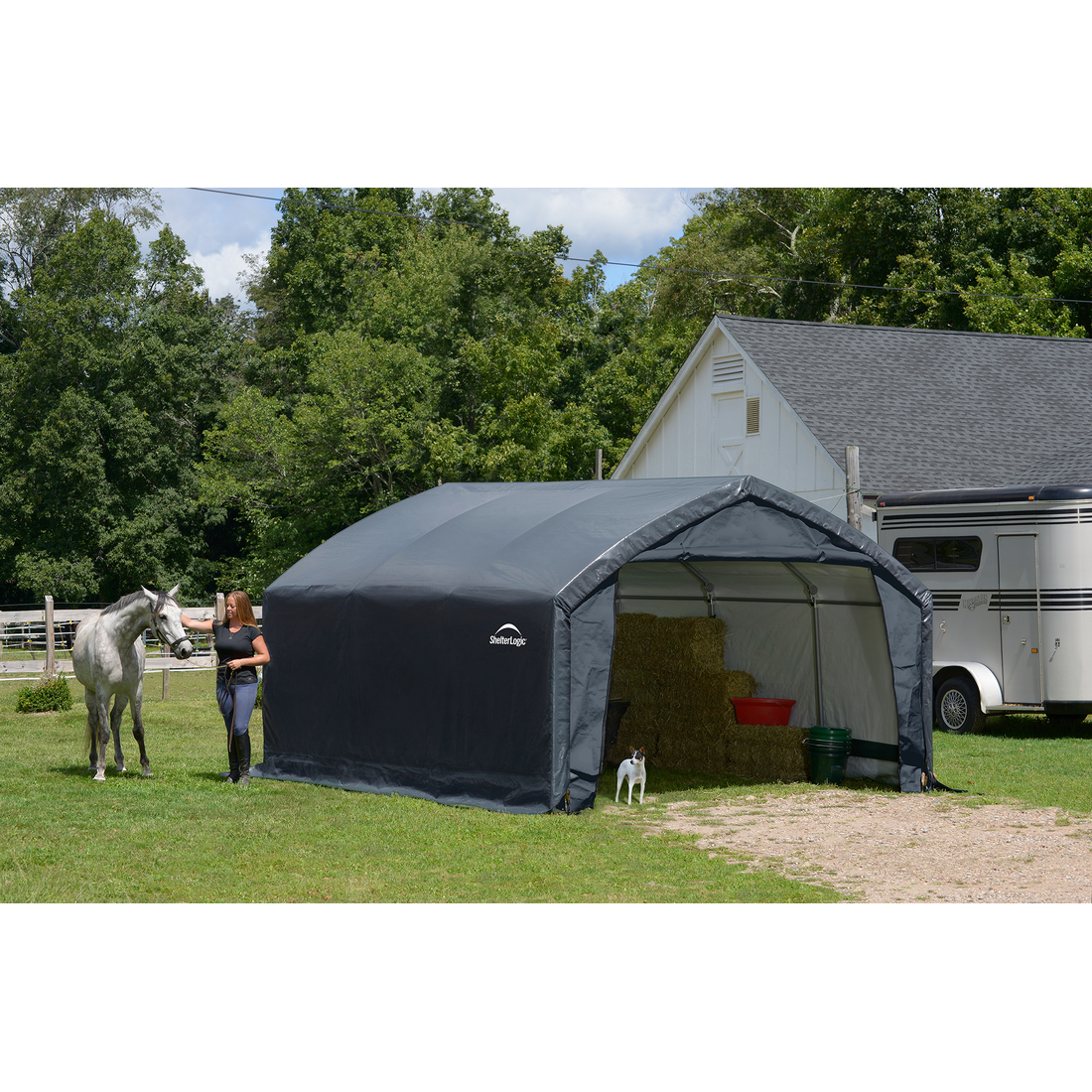 Meet the AccelaFrame Garage 12 x 15 x 9 ft. Heavy Duty PVC 14.5 oz Gray. The revolutionary AccelaFrame Custom Garage Program is the only patented quick assembly, custom garage. Made to last season after season, the AccelaFrame is built strong and features our patented quick assembly technology. The AccelaFrame is the only quick assembly garage available in such a wide range of size options. Choose from a garage as small as 12 x 10 x 9 ft. or as large as 12 x 100 x 9 ft. and in a variety of color options. Assemble your AccelaFrame in no time thanks to the AccelaFrame Rib and Quick Assembly System - some garages can be properly assembled in less than an hour! Strong, sturdy and durable - the AccelaFrame offers protection for items you need to store and is a portable and easy to assemble reliable storage solution. Whether you're looking for a seasonal shelter or garage for your car, ATV, truck or boat - or you need a more permanent shelter or garage for your backyard, the AccelaFrame Custom Garage Program has the size you need to safely and securely store your items.