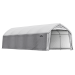 Meet the AccelaFrame Garage 12 x 25 x 9 ft. Heavy Duty PVC 14.5 oz White. The revolutionary AccelaFrame Custom Garage Program is the only patented quick assembly, custom garage. Made to last season after season, the AccelaFrame is built strong and features our patented quick assembly technology. The AccelaFrame is the only quick assembly garage available in such a wide range of size options. Choose from a garage as small as 12 x 10 x 9 ft. or as large as 12 x 100 x 9 ft. and in a variety of color options. Assemble your AccelaFrame in no time thanks to the AccelaFrame Rib and Quick Assembly System - some garages can be properly assembled in less than an hour! Strong, sturdy and durable - the AccelaFrame offers protection for items you need to store and is a portable and easy to assemble reliable storage solution. Whether you're looking for a seasonal shelter or garage for your car, ATV, truck or boat - or you need a more permanent shelter or garage for your backyard, the AccelaFrame Custom Garage Program has the size you need to safely and securely store your items.