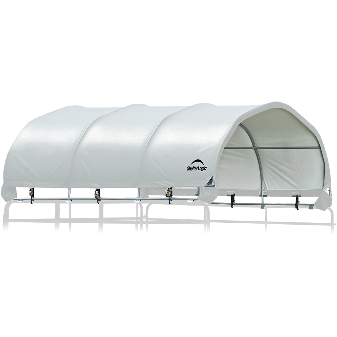 The Corral Shelter livestock shade is a multi-purpose, portable shade and shelter structure and one of our most convenient equine innovations, yet. Engineered and built in the U.S.A., and made of 100% ASTM A500 galvanized steel; it is a sturdy, durable, portable shade solution. The universal cover fits most panel tube profiles (whether round, square or oval) tightly and securely to provide reliable shade protection anywhere in the field for horses, goats, most livestock, and even agricultural storage. The unit features patented ShelterLock Steel Stabilizers and anchors securely to the ground for reliable shade.
