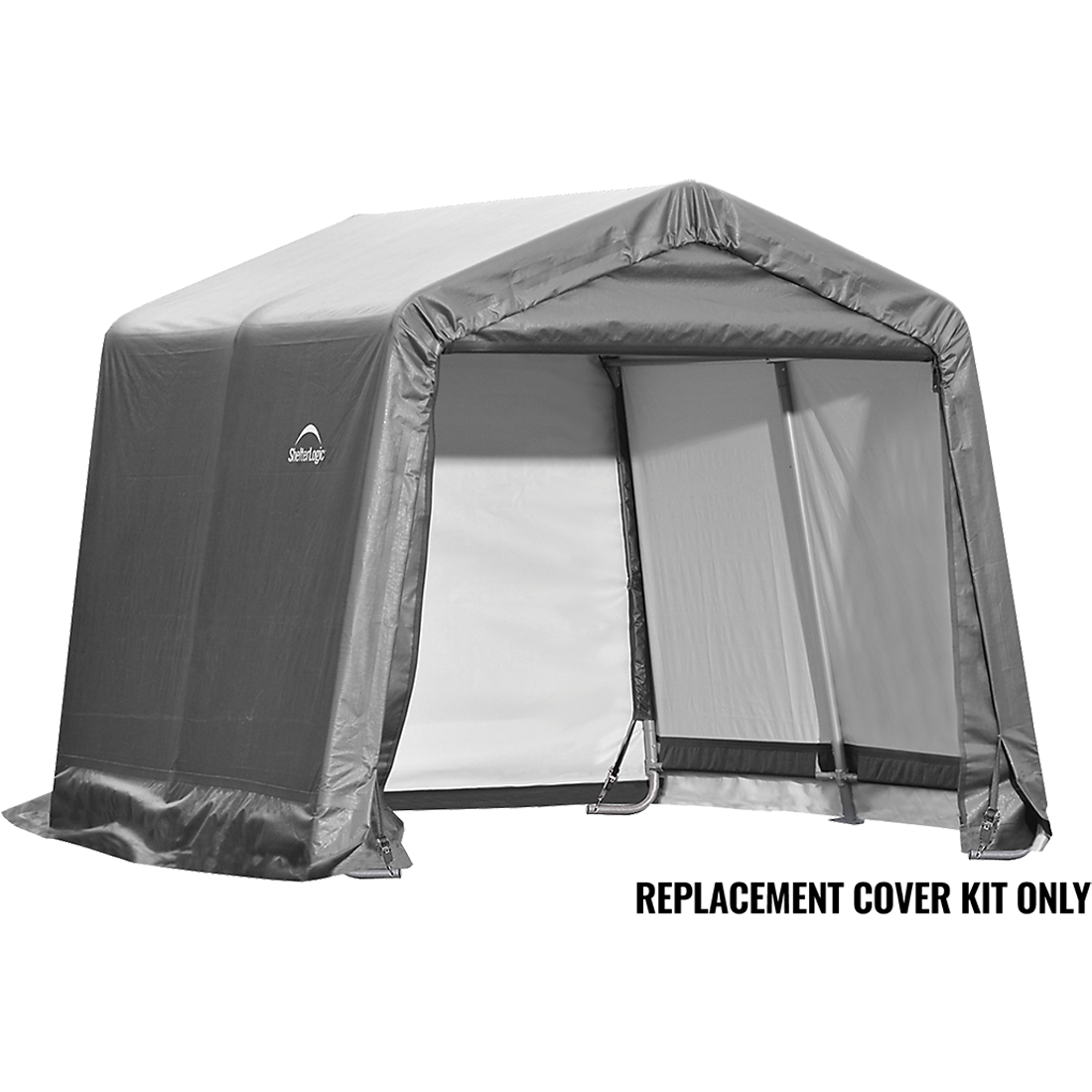 The Shed-in-a-Box® 10 x 10 x 8 ft. Replacement Cover Kit replaces your existing ShelterLogic Shed-in-a-Box 10 x 10 x 8 ft. cover and end panels. The 100% waterproof ShelterLogic fabric replacement cover is made strong and has been UV treated inside and out to prevent and reduce fading and deterioration from harmful UV rays. Available in Standard, Heavy Duty 14.5 oz. and Ultra Duty 21.5 oz. See the chart for details. COVER KIT ONLY, FRAME SOLD SEPARATELY.