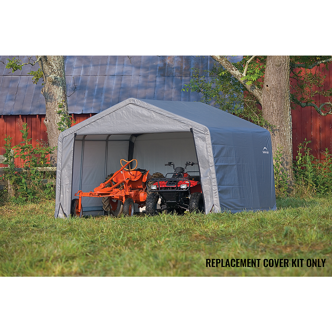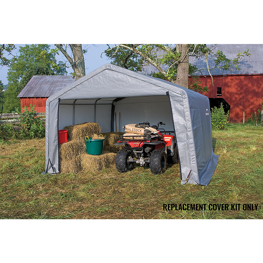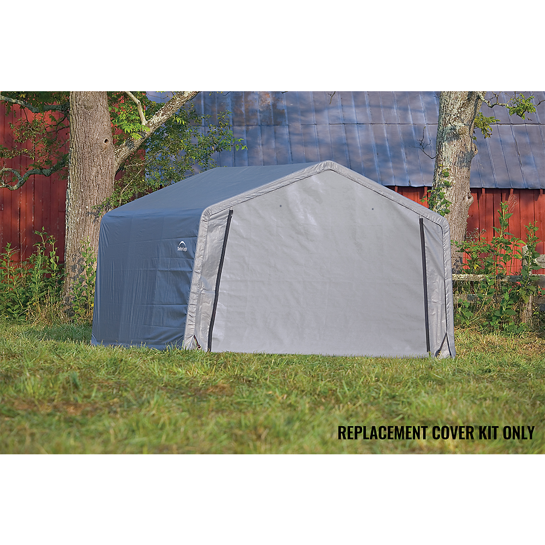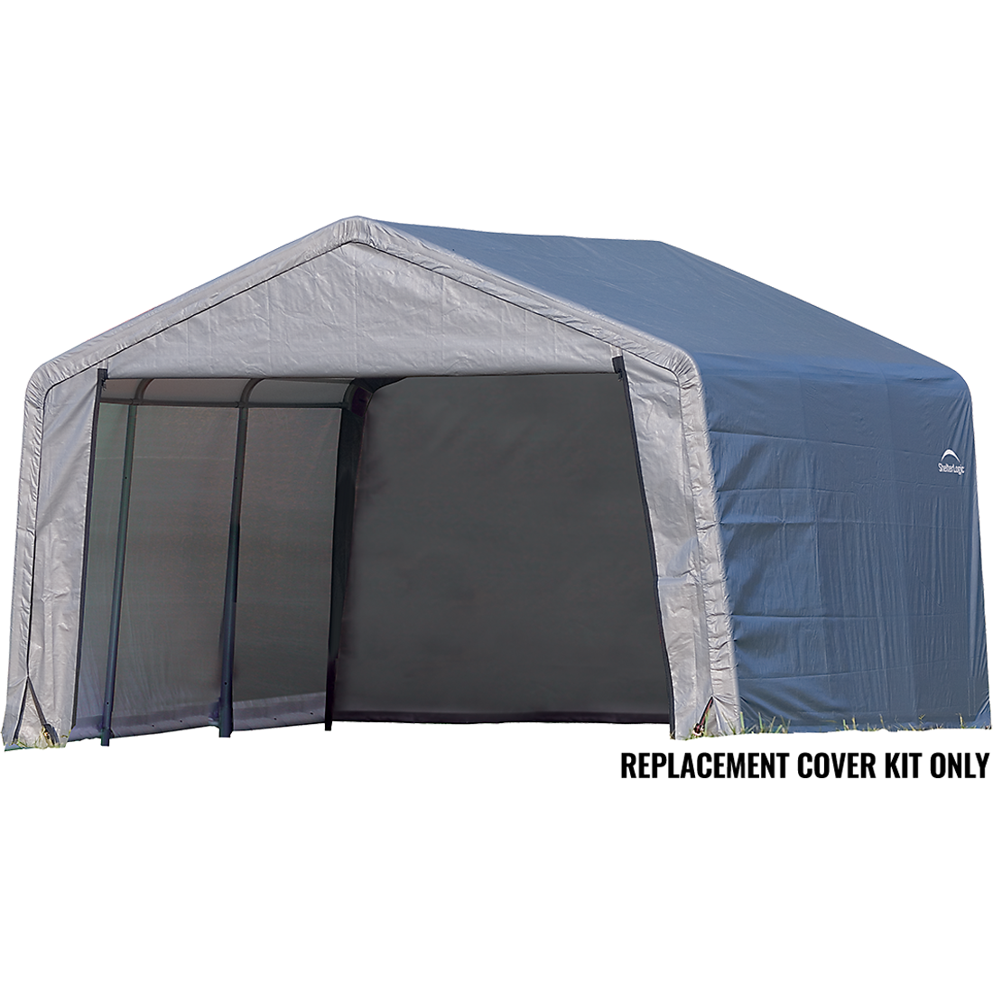 The Shed-in-a-Box® 12 x 12 x 8 ft. Replacement Cover Kit replaces your existing ShelterLogic Shed-in-a-Box 12 x 12 x 8 ft. cover and end panels. The 100% waterproof ShelterLogic fabric replacement cover is made strong and has been UV treated inside and out to prevent and reduce fading and deterioration from harmful UV rays. Available in Standard, Heavy Duty 14.5 oz. and Ultra Duty 21.5 oz. See the chart for details. COVER KIT ONLY, FRAME SOLD SEPARATELY.