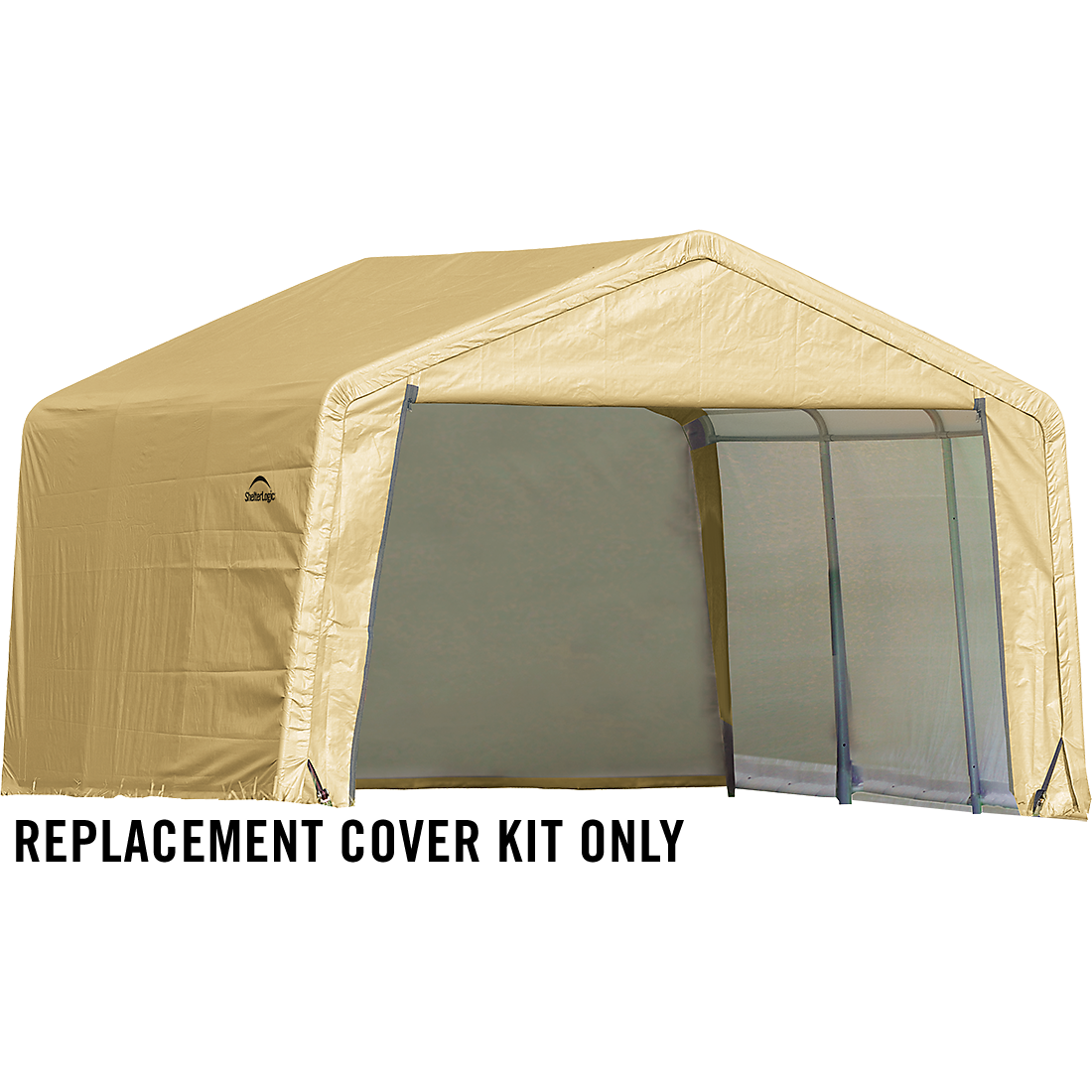 The Shed-in-a-Box® 12 x 12 x 8 ft. Replacement Cover Kit replaces your existing ShelterLogic Shed-in-a-Box 12 x 12 x 8 ft. cover and end panels. The 100% waterproof ShelterLogic fabric replacement cover is made strong and has been UV treated inside and out to prevent and reduce fading and deterioration from harmful UV rays. Available in Standard, Heavy Duty 14.5 oz. and Ultra Duty 21.5 oz. See the chart for details. COVER KIT ONLY, FRAME SOLD SEPARATELY.