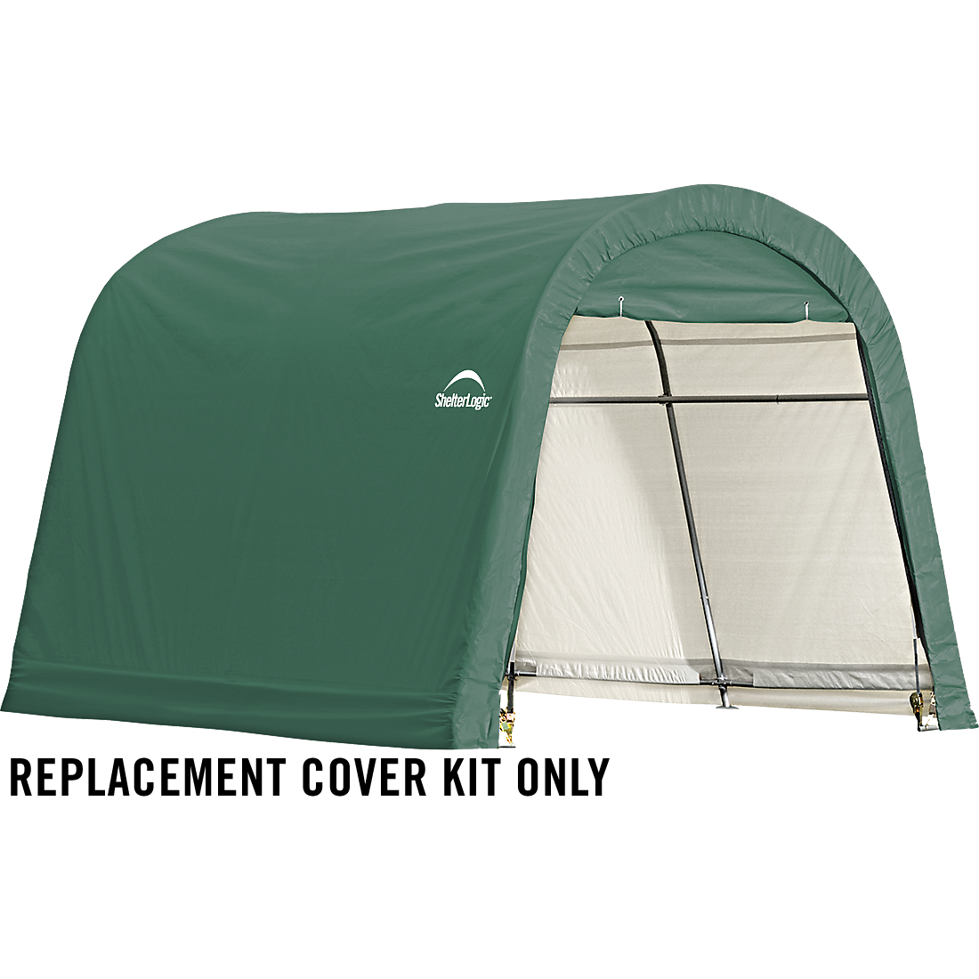 The Shed-in-a-Box RoundTop® 10 x 10 x 8 ft. Replacement Cover Kit replaces your existing ShelterLogic Shed-in-a-Box RoundTop 10 x 10 x 8 ft. cover and end panels. The 100% waterproof ShelterLogic fabric replacement cover is made strong and has been UV treated inside and out to prevent and reduce fading and deterioration from harmful UV rays. Available in Standard, Heavy Duty 14.5 oz. and Ultra Duty 21.5 oz. See the chart for details. COVER KIT ONLY, FRAME SOLD SEPARATELY.