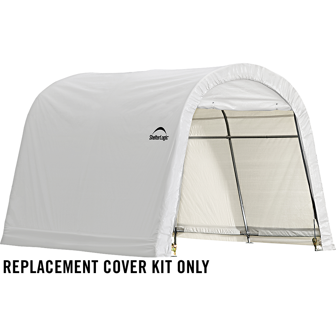 The Shed-in-a-Box RoundTop® 10 x 10 x 8 ft. Replacement Cover Kit replaces your existing ShelterLogic Shed-in-a-Box RoundTop 10 x 10 x 8 ft. cover and end panels. The 100% waterproof ShelterLogic fabric replacement cover is made strong and has been UV treated inside and out to prevent and reduce fading and deterioration from harmful UV rays. Available in Standard, Heavy Duty 14.5 oz. and Ultra Duty 21.5 oz. See the chart for details. COVER KIT ONLY, FRAME SOLD SEPARATELY.