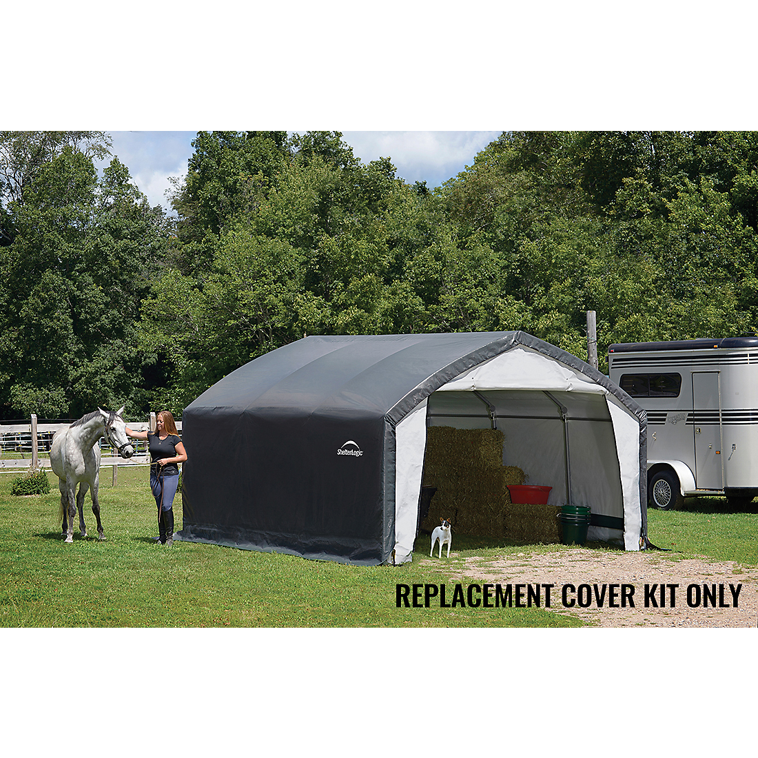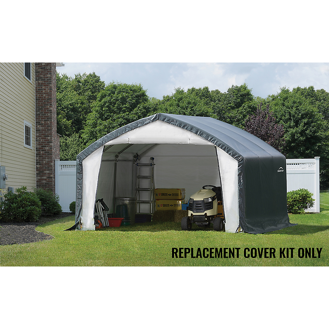 The AccelaFrame™ HD Shelter 12 x 15 x 9 ft. Replacement Cover Kit replaces your existing ShelterLogic AccelaFrame Shelter 12 x 15 x 9 ft. cover and end panels. The 100% waterproof ShelterLogic fabric replacement cover is made strong and has been UV treated inside and out to prevent and reduce fading and deterioration from harmful UV rays. Available in Standard, Heavy Duty 14.5 oz. and Ultra Duty 21.5 oz. See the chart for details. COVER KIT ONLY, FRAME SOLD SEPARATELY.