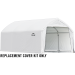 The AccelaFrame™ HD Shelter 12 x 15 x 9 ft. Replacement Cover Kit replaces your existing ShelterLogic AccelaFrame Shelter 12 x 15 x 9 ft. cover and end panels. The 100% waterproof ShelterLogic fabric replacement cover is made strong and has been UV treated inside and out to prevent and reduce fading and deterioration from harmful UV rays. Available in Standard, Heavy Duty 14.5 oz. and Ultra Duty 21.5 oz. See the chart for details. COVER KIT ONLY, FRAME SOLD SEPARATELY.