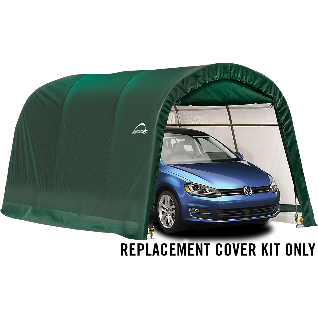 The AutoShelter RoundTop® Replacement Cover Kit replaces your existing ShelterLogic AutoShelter RoundTop cover and end panels. The 100% waterproof ShelterLogic fabric replacement cover is made strong and has been UV treated inside and out to prevent and reduce fading and deterioration from harmful UV rays. Available in Standard, Heavy Duty 14.5 oz. and Ultra Duty 21.5 oz. See the chart for details. COVER KIT ONLY, FRAME SOLD SEPARATELY.