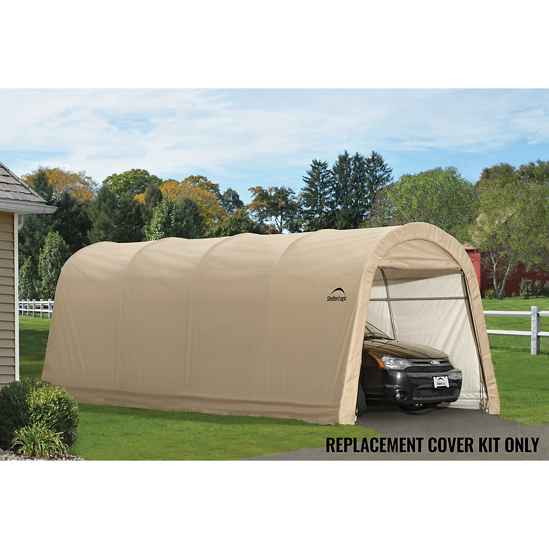 The AutoShelter RoundTop® 10 x 20 x 8 ft. Replacement Cover Kit replaces your existing ShelterLogic AutoShelter RoundTop 10 x 20 x 8 ft. cover and end panels. The 100% waterproof ShelterLogic fabric replacement cover is made strong and has been UV treated inside and out to prevent and reduce fading and deterioration from harmful UV rays. Available in Standard, Heavy Duty 14.5 oz. and Ultra Duty 21.5 oz. See the chart for details. COVER KIT ONLY, FRAME SOLD SEPARATELY.