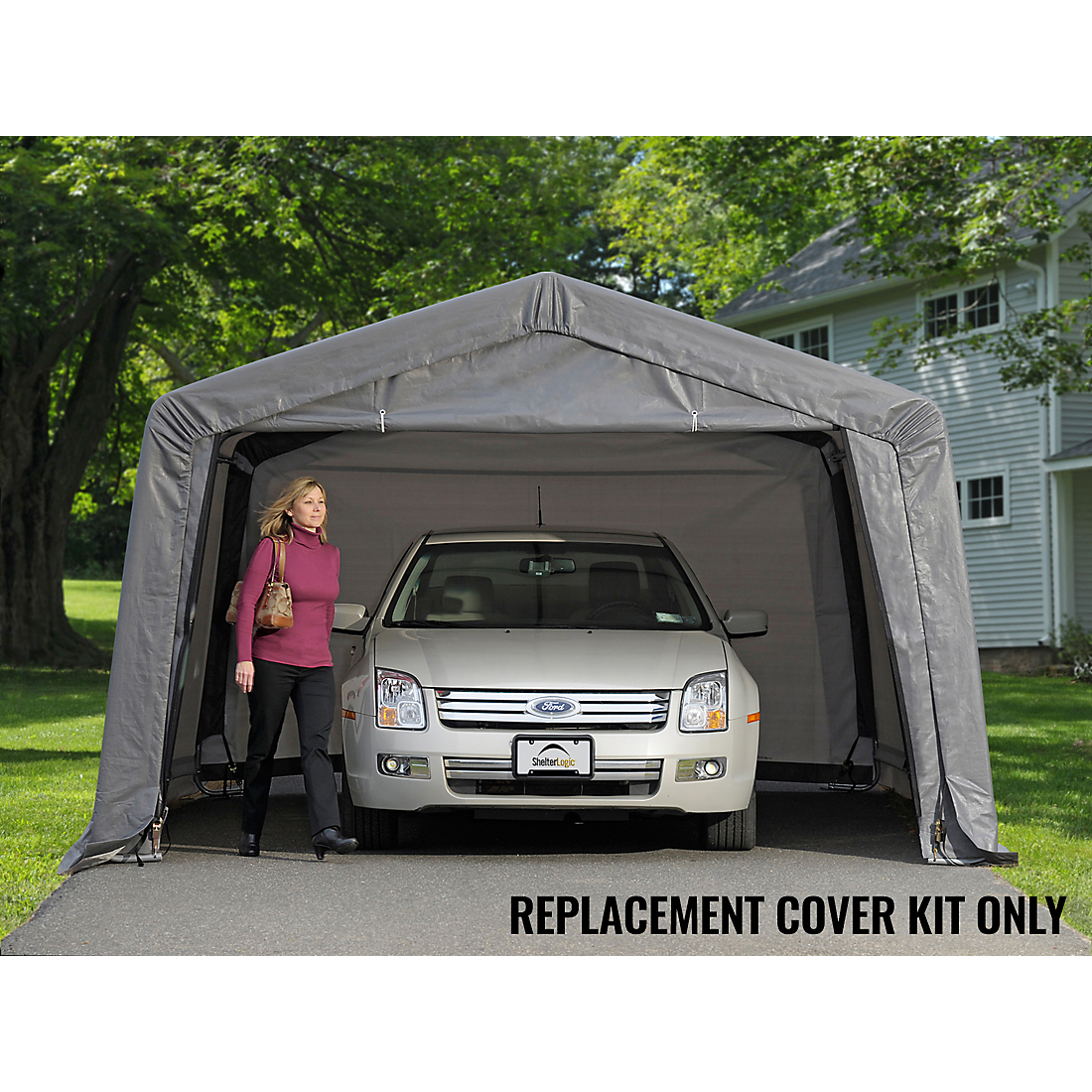 The Garage-in-a-Box® 12 x 16 x 8 ft. Replacement Cover Kit replaces your existing Garage-in-a-Box 12 x 16 x 8 ft. cover and end panels. The 100% waterproof ShelterLogic fabric replacement cover is made strong and has been UV treated inside and out to prevent and reduce fading and deterioration from harmful UV rays. Available in Standard Gray, Heavy Duty 14.5 oz. and Ultra Duty 21.5 oz. See the chart for details. COVER KIT ONLY, FRAME SOLD SEPARATELY.