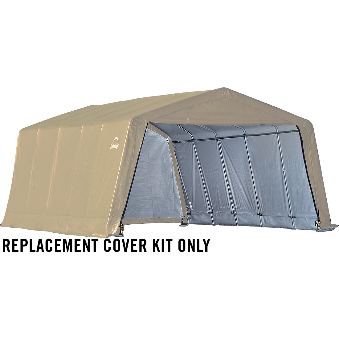 The Garage-in-a-Box® 12 x 20 x 8 ft. Replacement Cover Kit replaces your existing ShelterLogic peak Garage-in-a-Box 12 x 20 x 8 ft. cover and end panels. The 100% waterproof ShelterLogic fabric replacement cover is made strong and has been UV treated inside and out to prevent and reduce fading and deterioration from harmful UV rays. Available in Standard, Heavy Duty 14.5 oz. and Ultra Duty 21.5 oz. See the chart for details. COVER KIT ONLY, FRAME SOLD SEPARATELY.