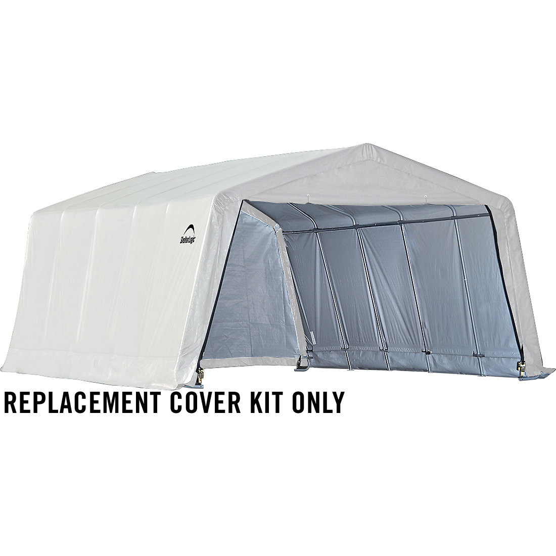 The Garage-in-a-Box® 12 x 20 x 8 ft. Replacement Cover Kit replaces your existing ShelterLogic peak Garage-in-a-Box 12 x 20 x 8 ft. cover and end panels. The 100% waterproof ShelterLogic fabric replacement cover is made strong and has been UV treated inside and out to prevent and reduce fading and deterioration from harmful UV rays. Available in Standard, Heavy Duty 14.5 oz. and Ultra Duty 21.5 oz. See the chart for details. COVER KIT ONLY, FRAME SOLD SEPARATELY.