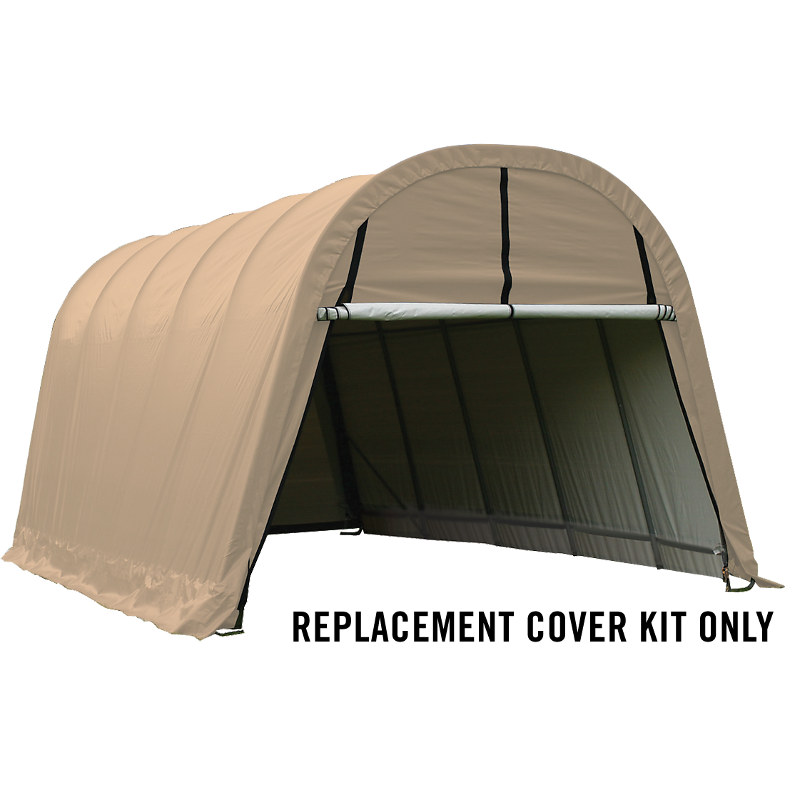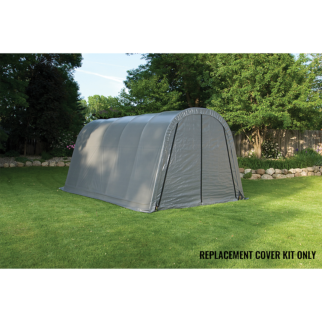 The Garage-in-a-Box® Round Replacement Cover Kit replaces your existing ShelterLogic Garage-in-a-Box Round cover and end panels. The 100% waterproof ShelterLogic fabric replacement cover is made strong and has been UV treated inside and out to prevent and reduce fading and deterioration from harmful UV rays. Available in Standard, Heavy Duty 14.5 oz. and Ultra Duty 21.5 oz. See the chart for details. COVER KIT ONLY, FRAME SOLD SEPARATELY.