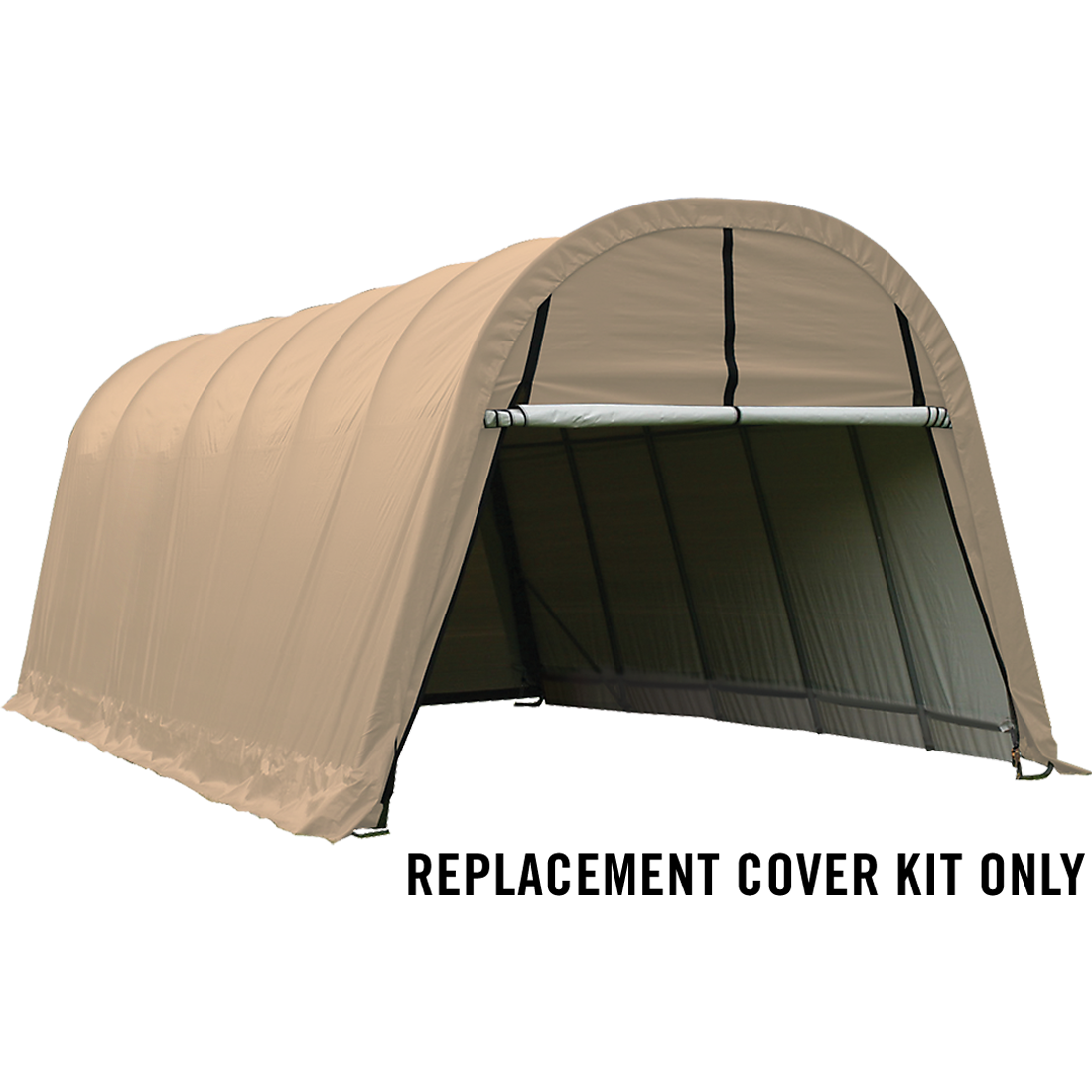 The round Garage-in-a-Box® 12 x 24 x 10 ft. Replacement Cover Kit replaces your existing ShelterLogic Garage-in-a-Box round 12 x 24 x 10 ft. cover and end panels. The 100% waterproof ShelterLogic fabric replacement cover is made strong and has been UV treated inside and out to prevent and reduce fading and deterioration from harmful UV rays. Available in Standard, Heavy Duty 14.5 oz. and Ultra Duty 21.5 oz. See the chart for details. COVER KIT ONLY, FRAME SOLD SEPARATELY.