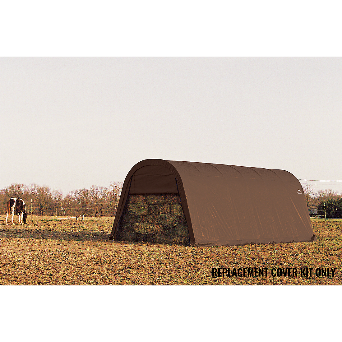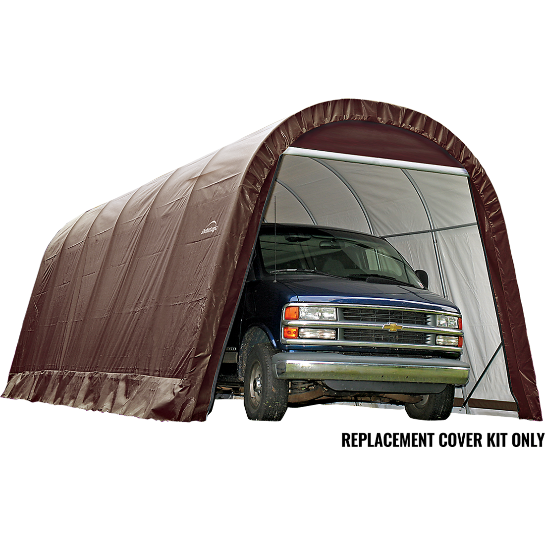 The round Garage-in-a-Box® 12 x 24 x 10 ft. Replacement Cover Kit replaces your existing ShelterLogic Garage-in-a-Box round 12 x 24 x 10 ft. cover and end panels. The 100% waterproof ShelterLogic fabric replacement cover is made strong and has been UV treated inside and out to prevent and reduce fading and deterioration from harmful UV rays. Available in Standard, Heavy Duty 14.5 oz. and Ultra Duty 21.5 oz. See the chart for details. COVER KIT ONLY, FRAME SOLD SEPARATELY.