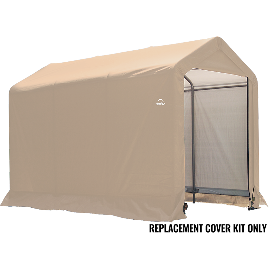 The Shed-in-a-Box® 6 x 10 x 6 ft. 6 in. Replacement Cover Kit replaces your existing ShelterLogic Shed-in-a-Box 6 x 10 x 6 ft. 6 in. cover and end panels. The 100% waterproof ShelterLogic fabric replacement cover is made strong and has been UV treated inside and out to prevent and reduce fading and deterioration from harmful UV rays. Available in Standard, Heavy Duty 14.5 oz. and Ultra Duty 21.5 oz. See the chart for details. COVER KIT ONLY, FRAME SOLD SEPARATELY.
