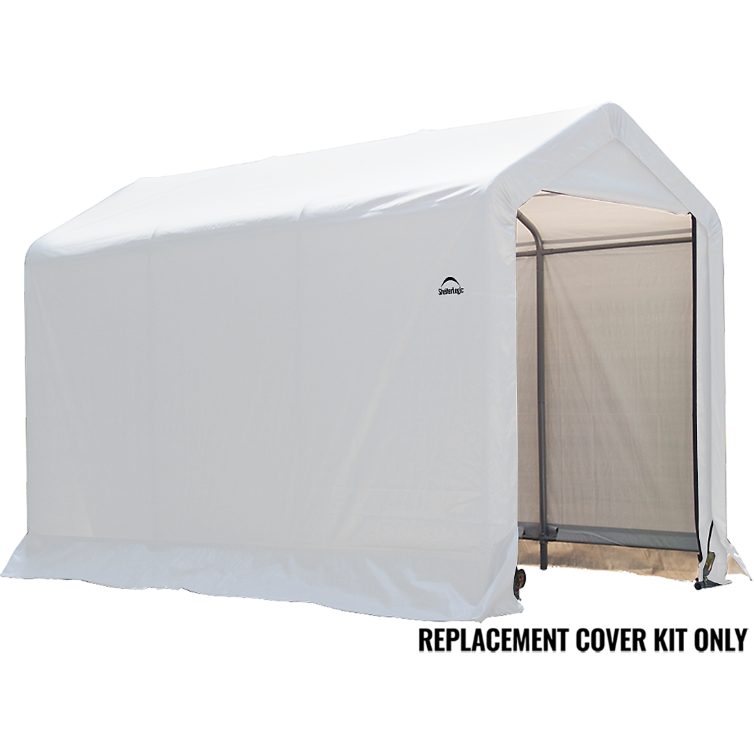 The Shed-in-a-Box® 6 x 10 x 6 ft. 6 in. Replacement Cover Kit replaces your existing ShelterLogic Shed-in-a-Box 6 x 10 x 6 ft. 6 in. cover and end panels. The 100% waterproof ShelterLogic fabric replacement cover is made strong and has been UV treated inside and out to prevent and reduce fading and deterioration from harmful UV rays. Available in Standard, Heavy Duty 14.5 oz. and Ultra Duty 21.5 oz. See the chart for details. COVER KIT ONLY, FRAME SOLD SEPARATELY.