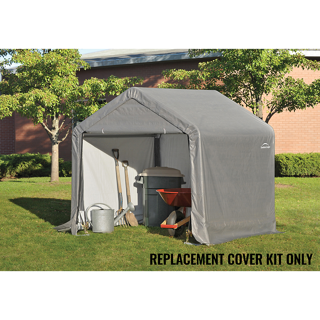 The Shed-in-a-Box® 6 x 6 x 6 ft. Replacement Cover Kit replaces your existing ShelterLogic Shed-in-a-Box 6 x 6 x 6 ft. cover and end panels. The 100% waterproof ShelterLogic fabric replacement cover is made strong and has been UV treated inside and out to prevent and reduce fading and deterioration from harmful UV rays. Available in Standard, Heavy Duty 14.5 oz. and Ultra Duty 21.5 oz. See the chart for details. COVER KIT ONLY, FRAME SOLD SEPARATELY.